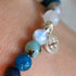 In dieser Konstellation habe ich Larimar, blauen Saphir, Apatit und Mondstein verwendet. Alles Heilsteine, die für das Sternzeichen Schütze stehen und ihren extrovertierten Charakter, Ehrlichkeit und Optimismus symbolisieren.