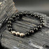 Das Armband besteht aus 3 Kugeln rhodinierten Meteorit und Obsidian. Bei Wunsch Obsidian/Pyrit. Wenn du keinen Wunsch äusserst, kommt das Armband Meteorit/Obsidian.